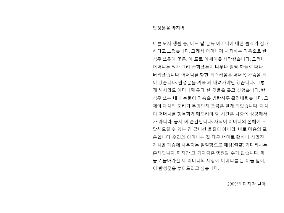 새벽녘에 내리는 이슬이 어머니의 눈물임을 느낄 때,